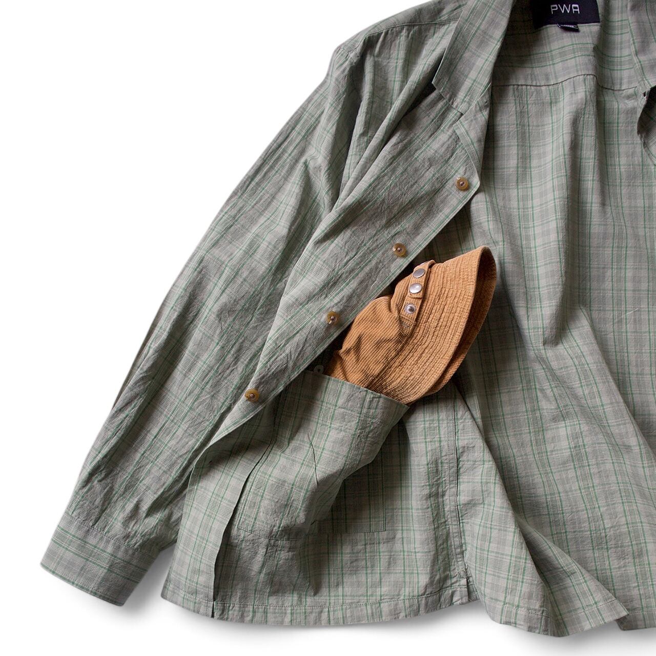 A long-sleeved open-collar shirt made from original check fabric produced in Japan.