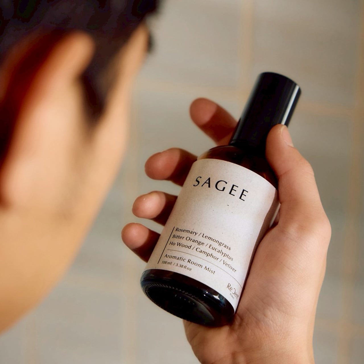 SAGEE: Based on the refreshing scents of rosemary and lemongrass, it has a light touch of bitter orange and eucalyptus, and is layered with ho wood, camphor, and vetiver for a deep and complex fragrance.