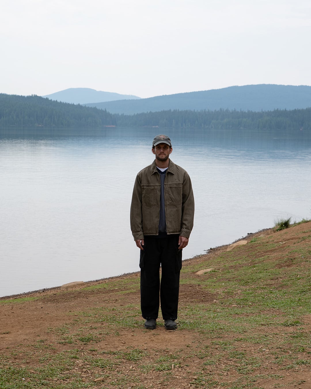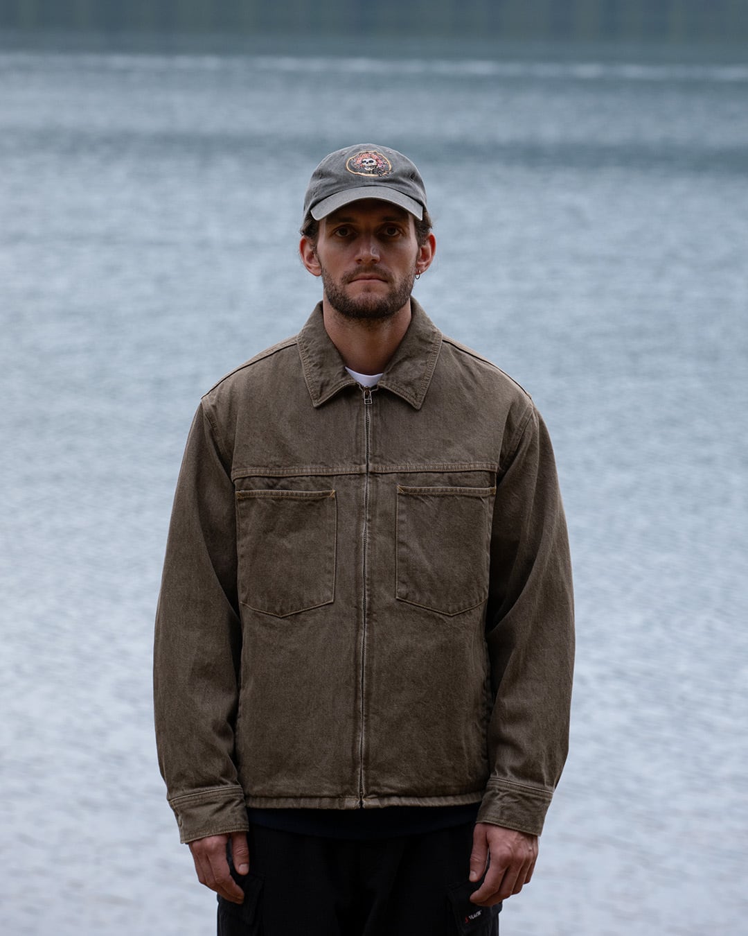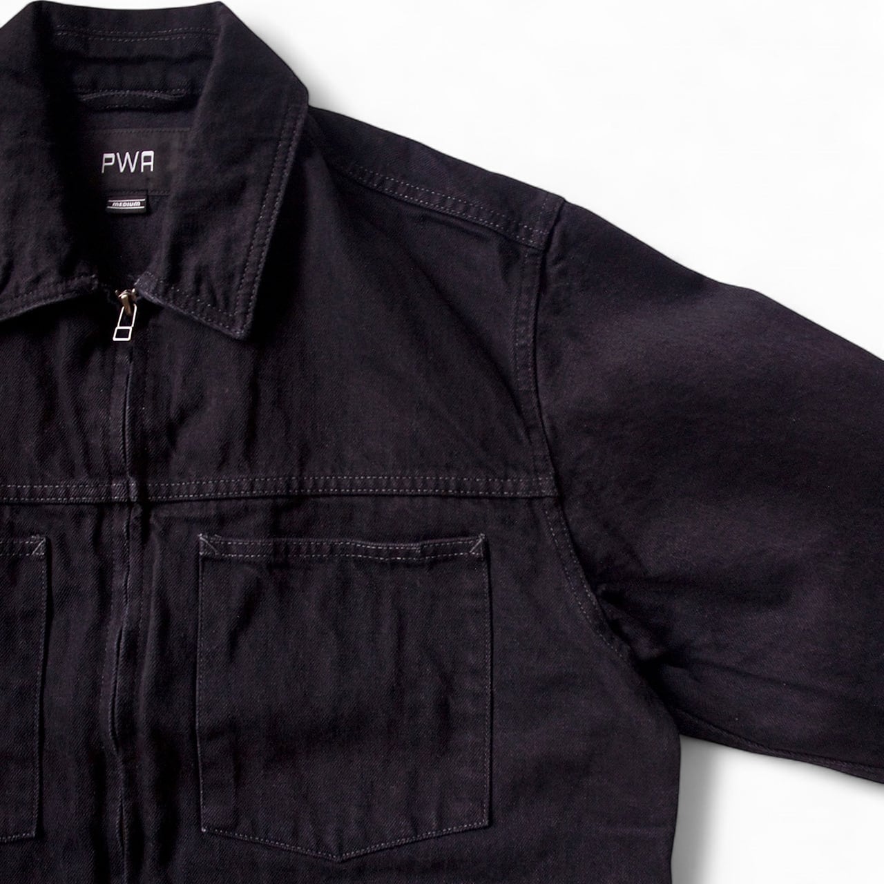 This zip-up jacket is crafted from 13.5oz colored denim.