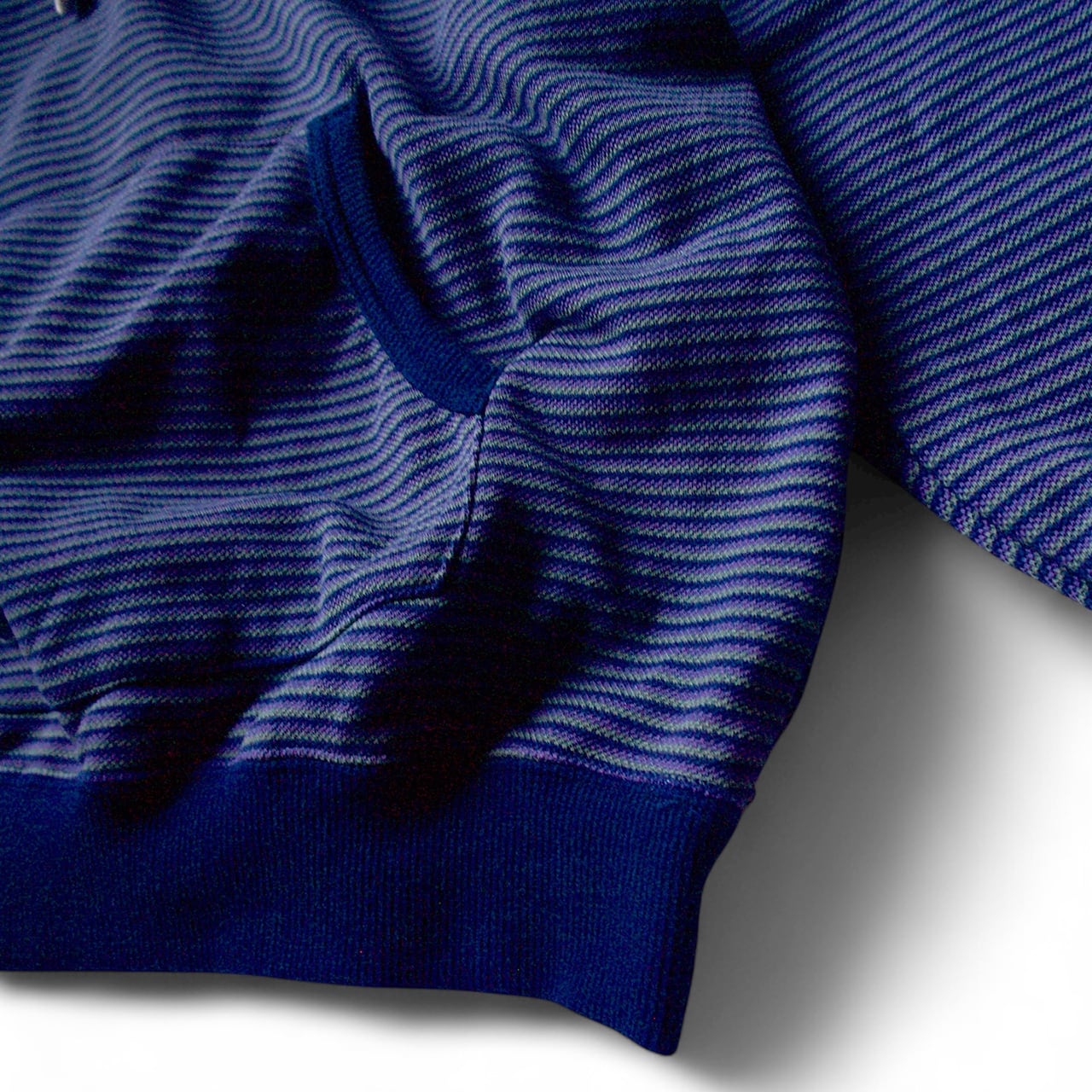 This time, it's available in two colors: the classic HEATHER GREY, as well as a navy-based fine-pitch striped pattern.