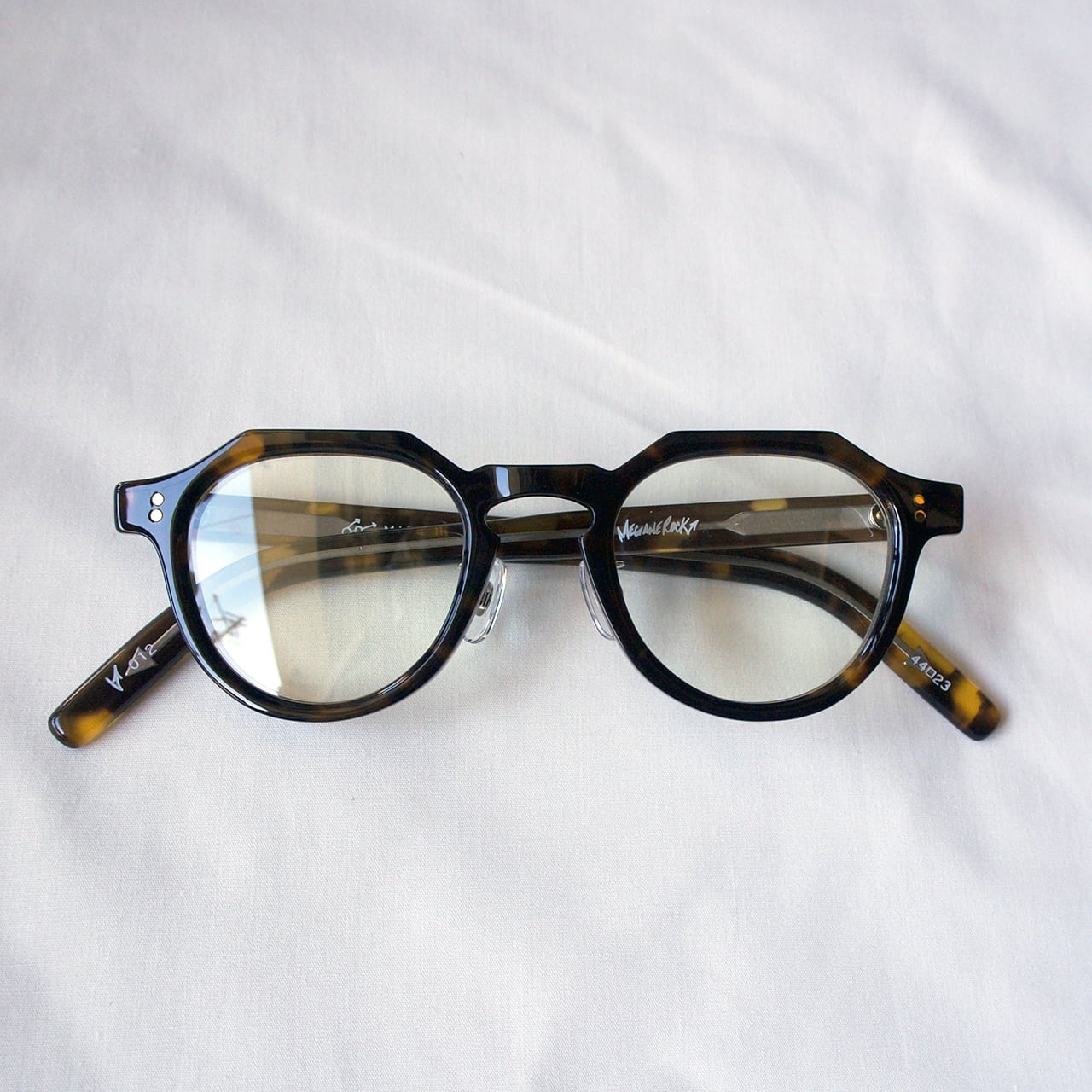 磨き込む事で深いツヤがある同ブランドのメガネは
