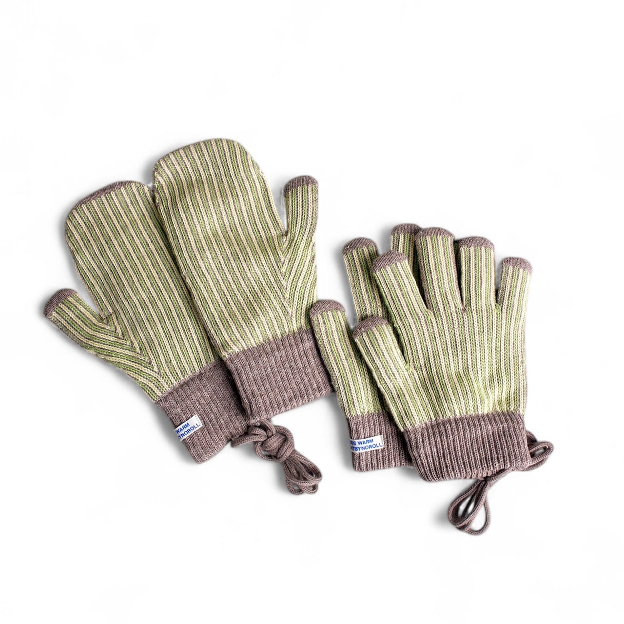 These gloves are made with upcycled wool and recycled acrylic yarn made from discarded plastic bottles.