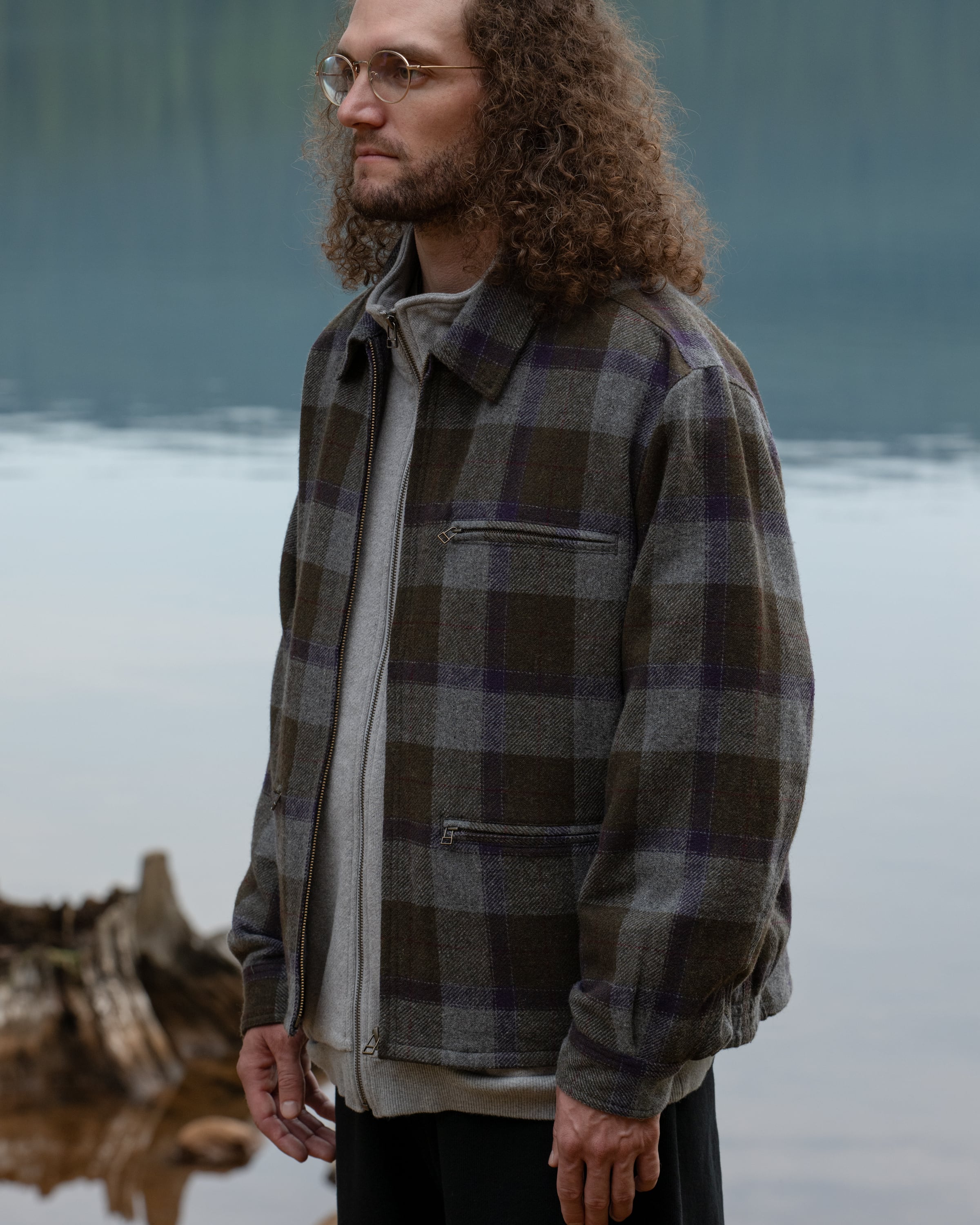 This zip-up jacket features an original pattern and is made with custom-made material from the wool-producing Bishu region of Aichi Prefecture.