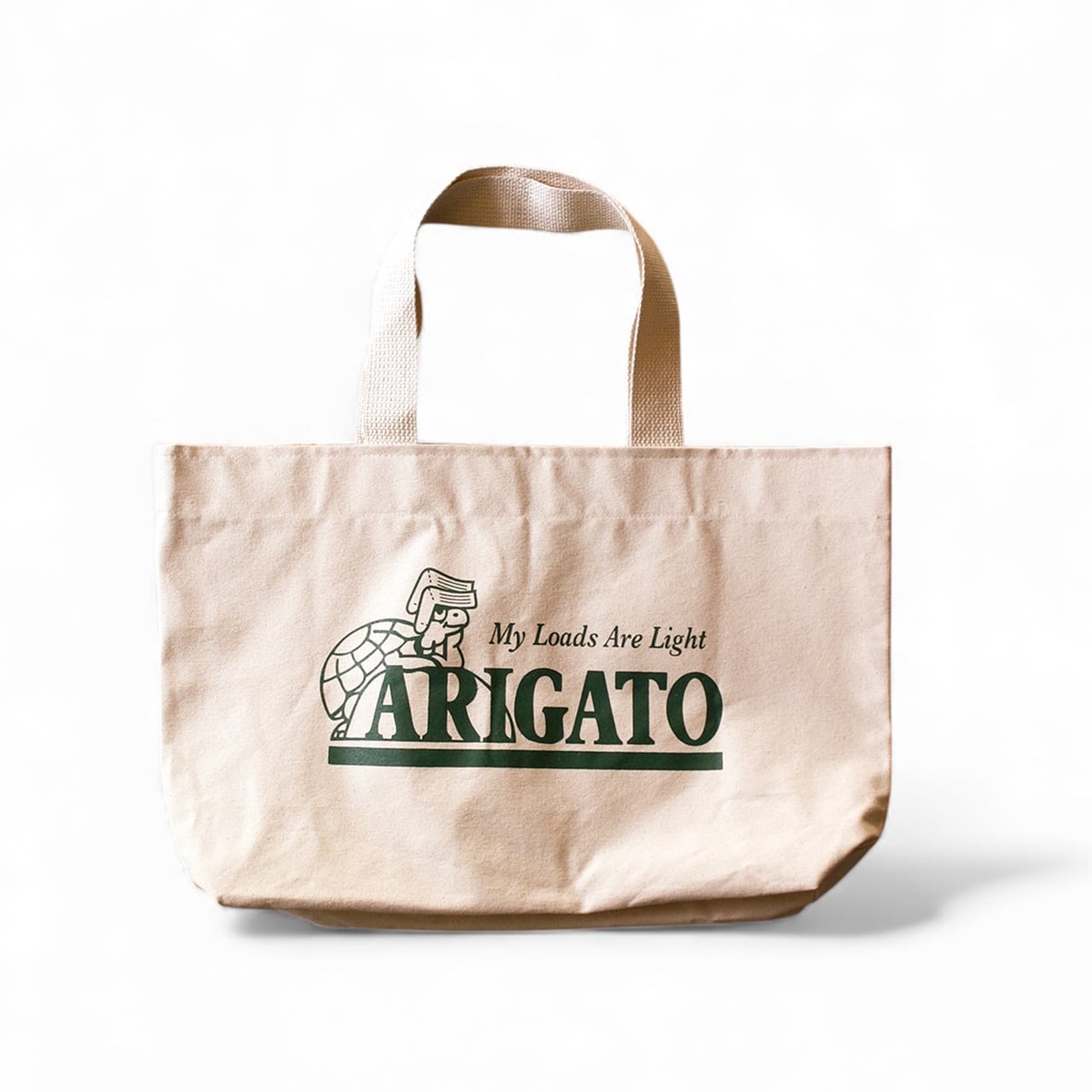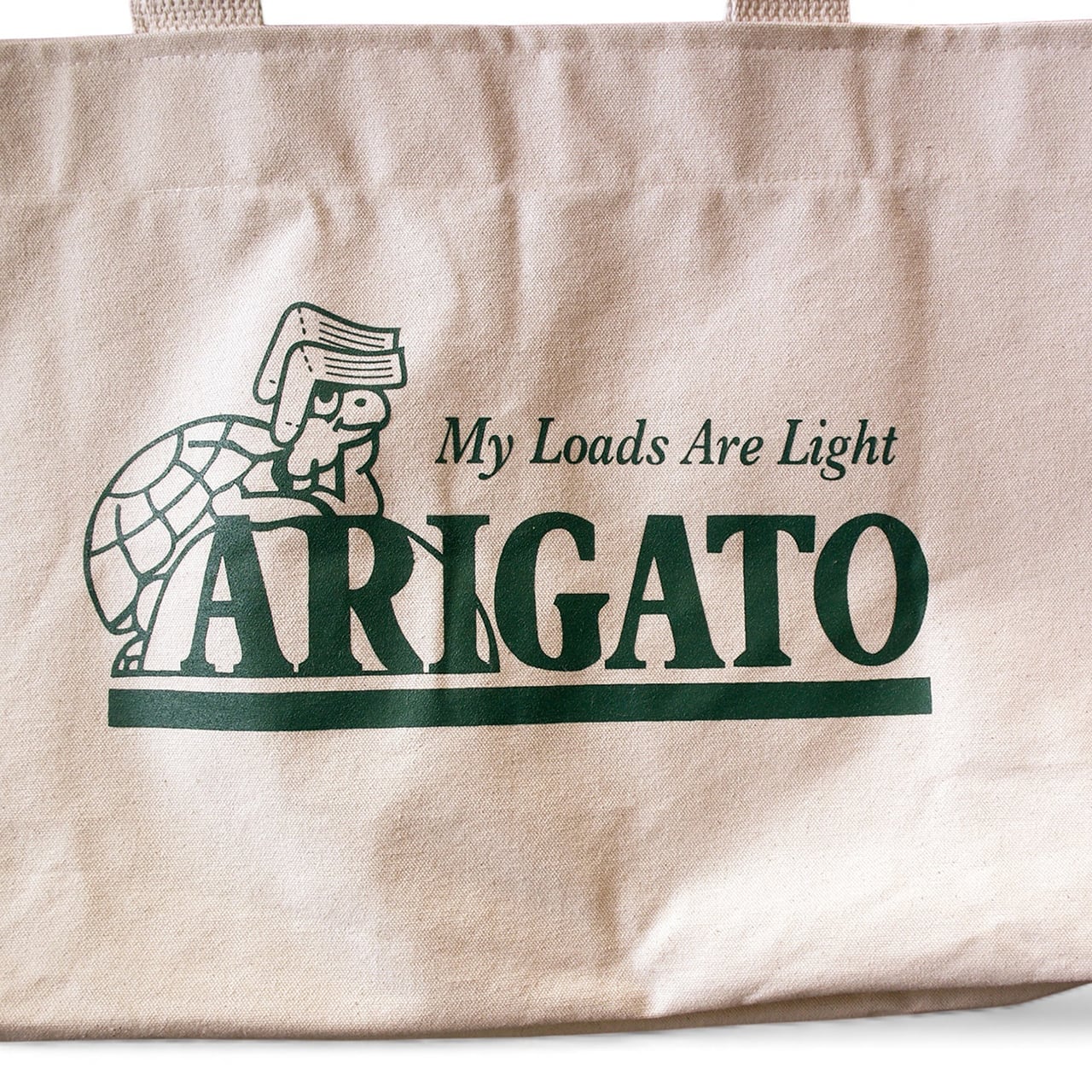This is the "ARIGATO" Canvas Tote Bag from MY LOADS ARE LIGHT.
