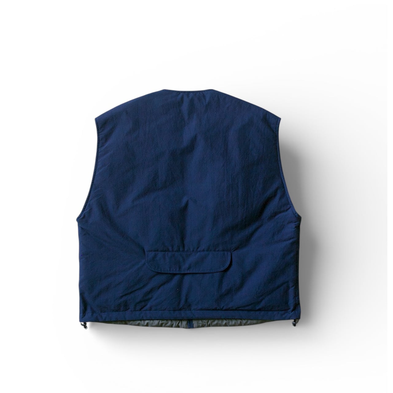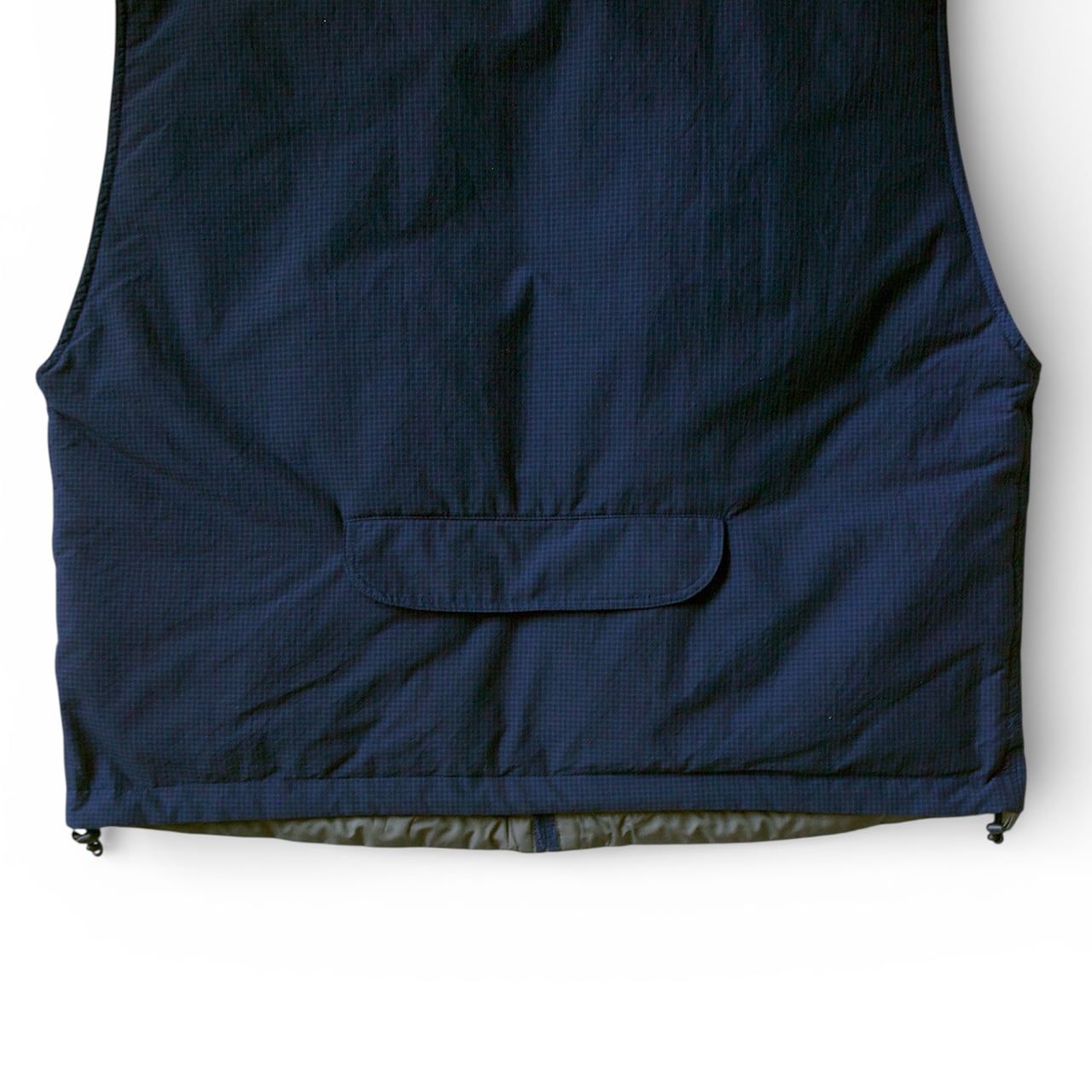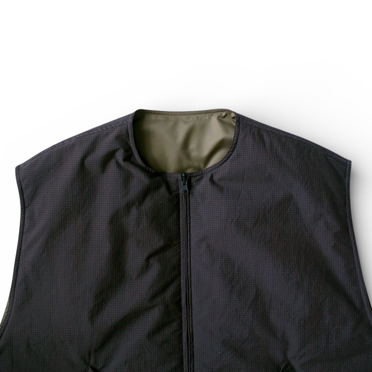 This season's classic spring/summer collarless vest has been updated with a reversible design and light padding.