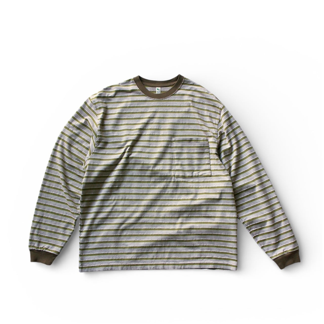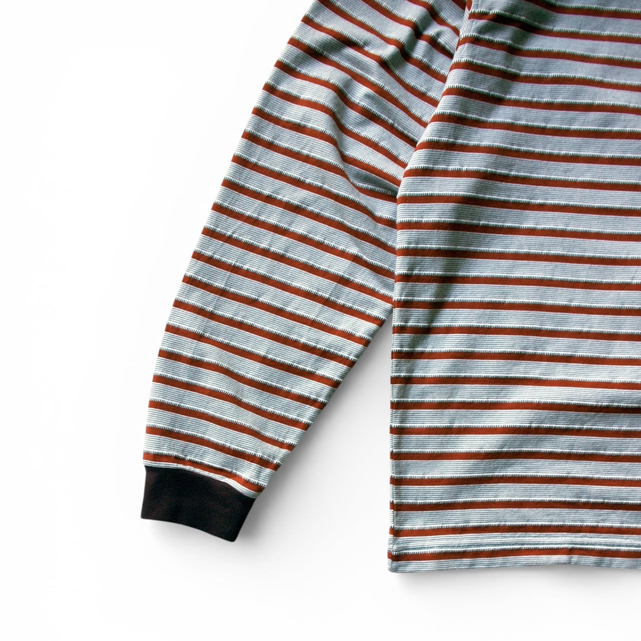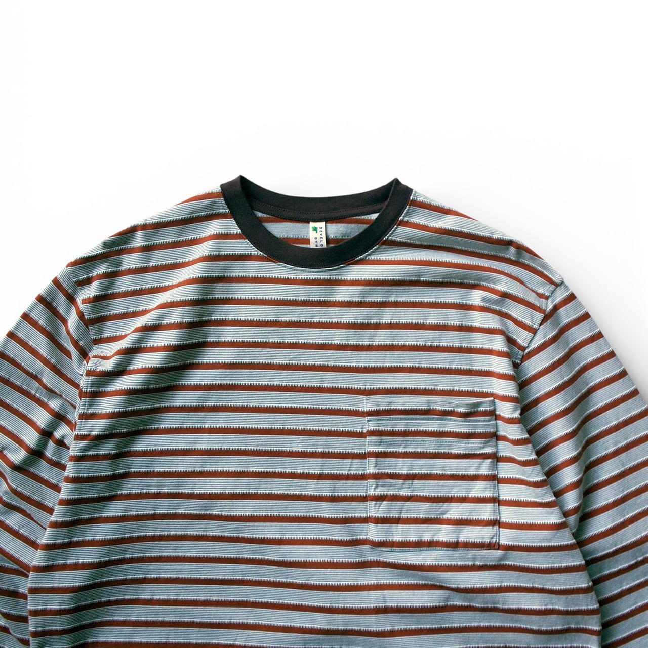オリジナル生地のボーダー+ジャガードのTシャツ。