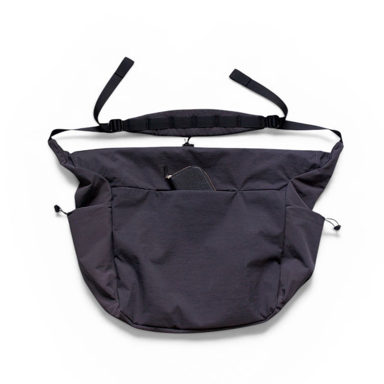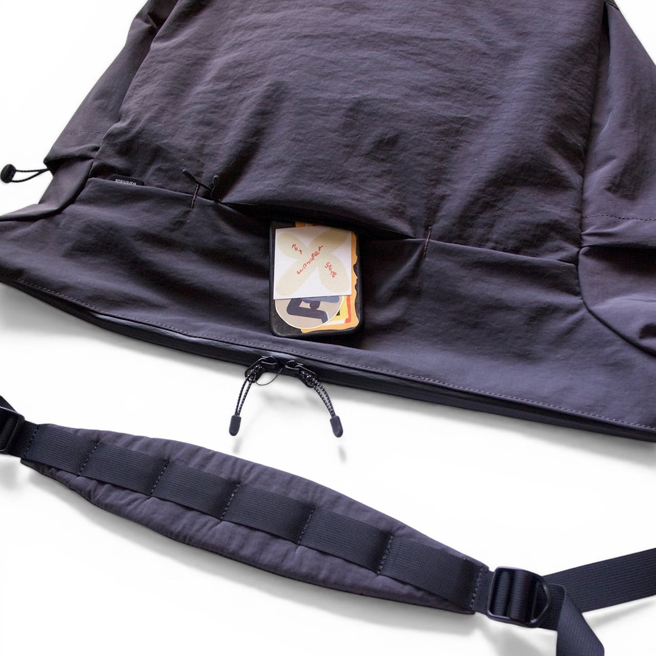 本体素材にはマットな質感でシワ加工を行った撥水性のある高密ナイロンを使用。
