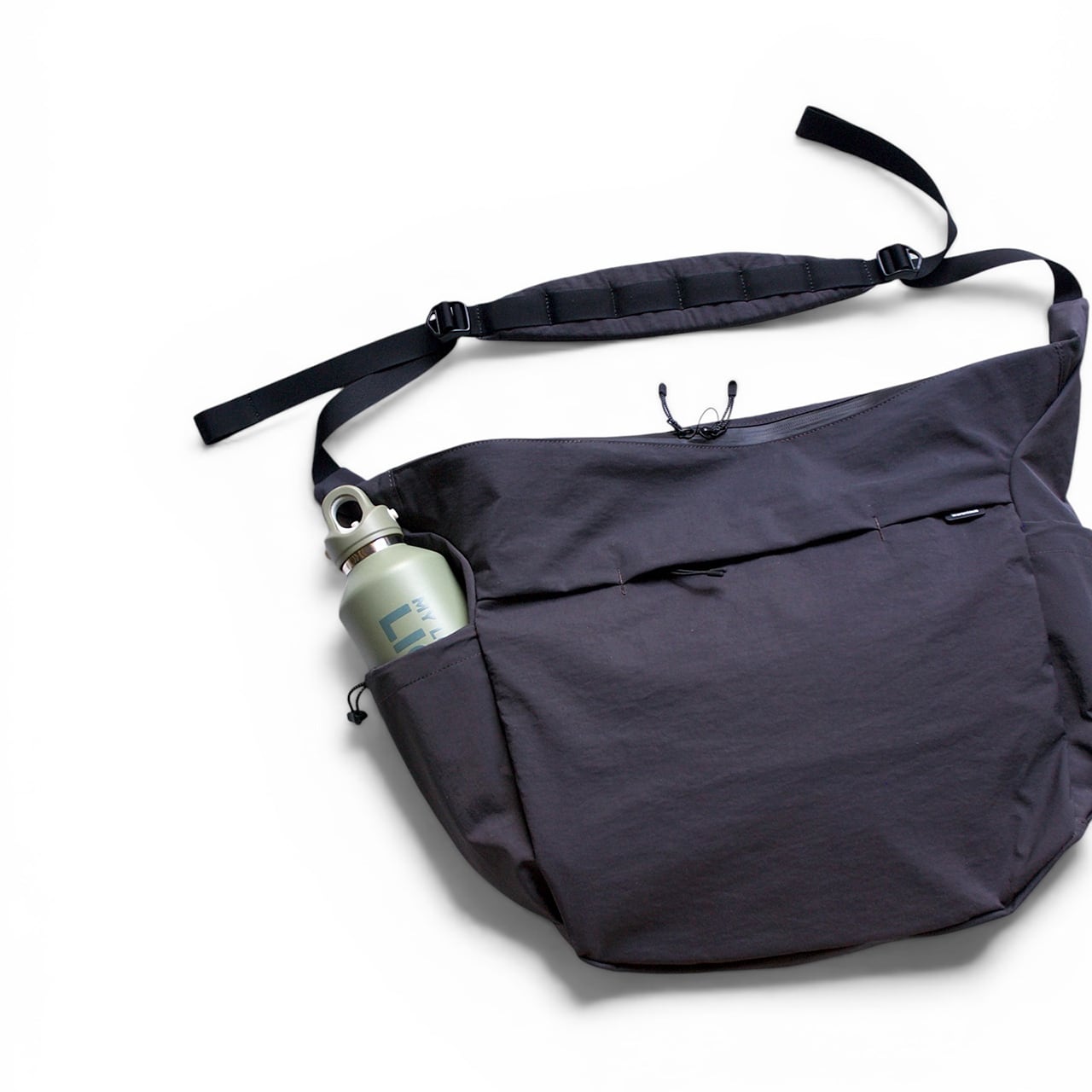Like the regular TASUKI, the main compartment has a zipper closure, and there are bottle pockets on both sides to secure water bottles or thermoses.