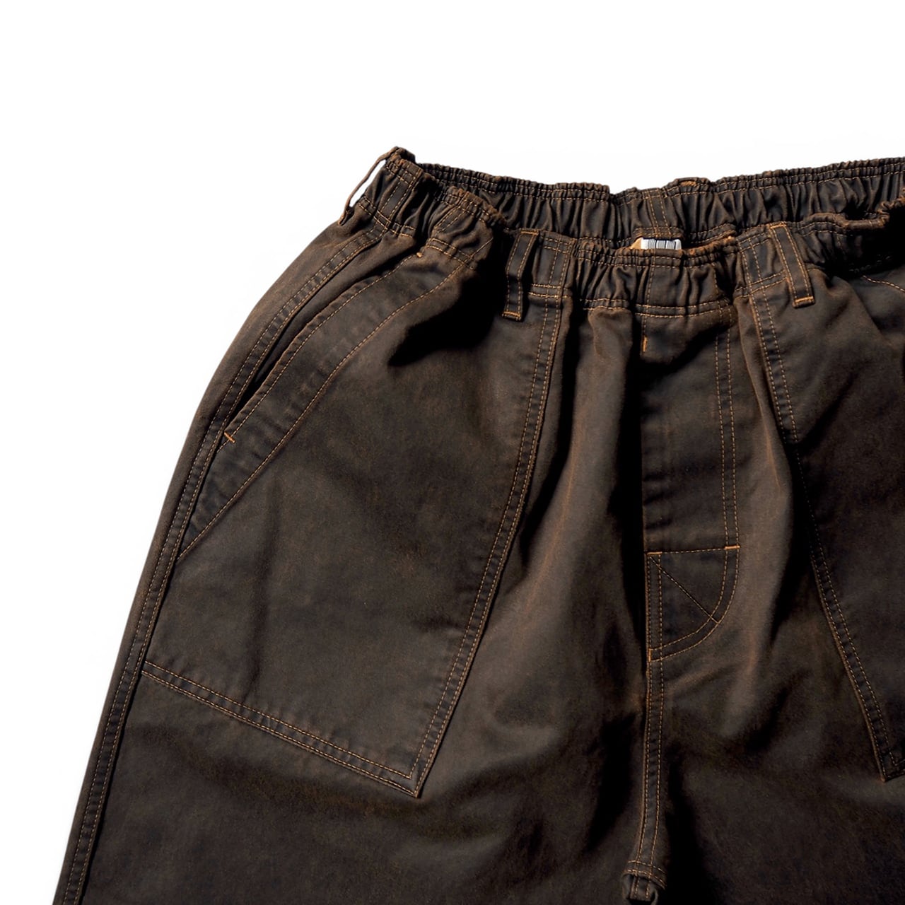 植物性ワックスによる独特なエイジング感が特徴の生地を使用したベイカーショーツ。
