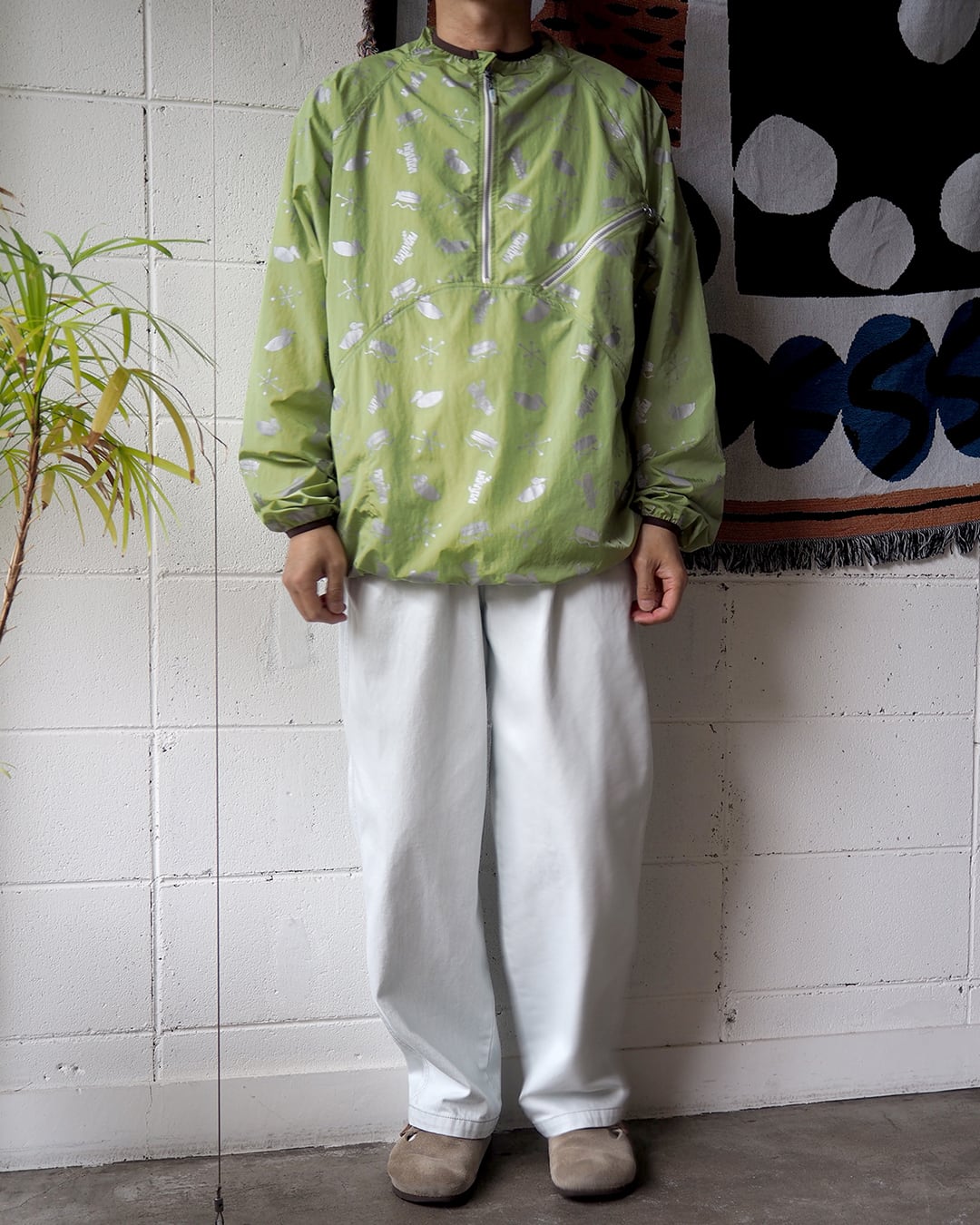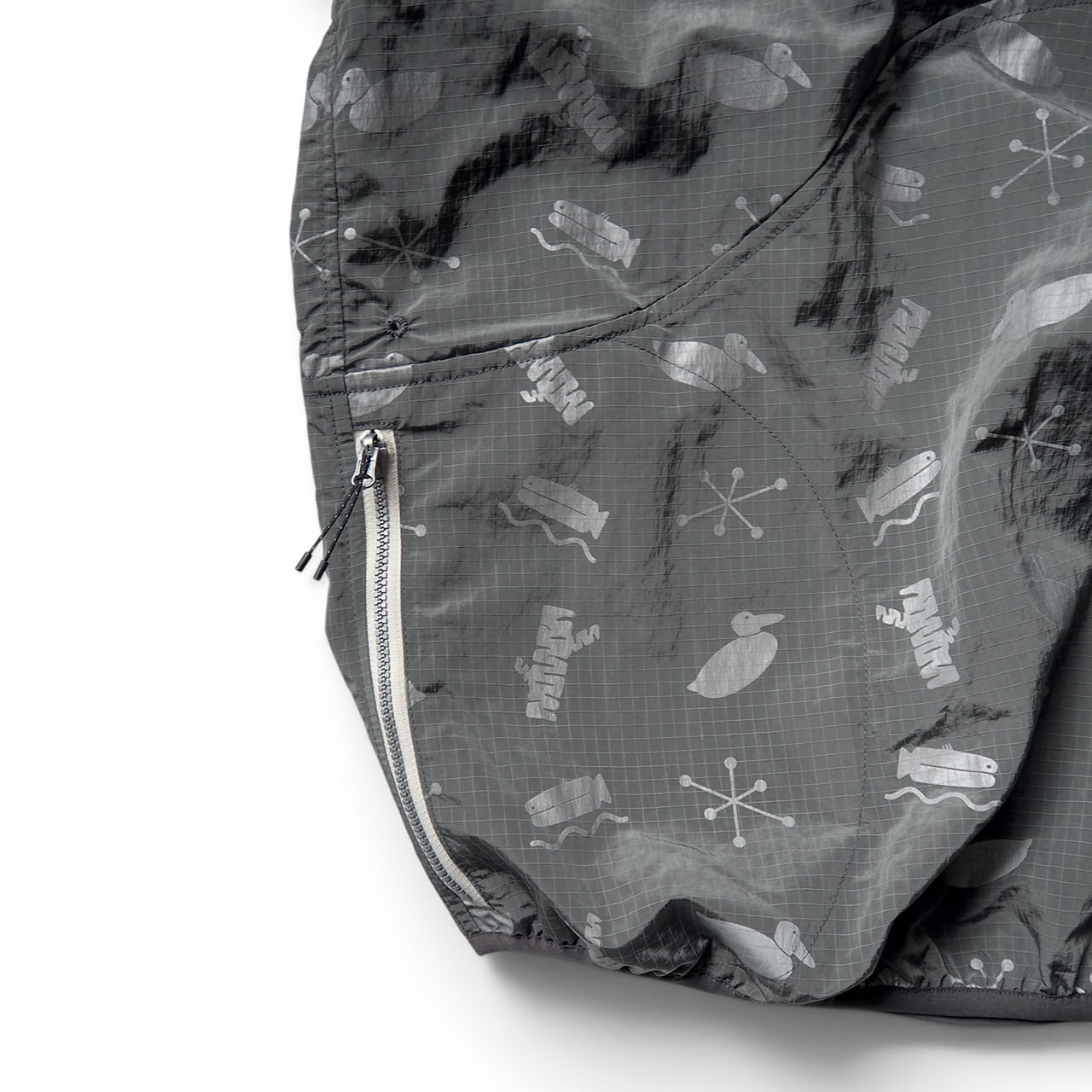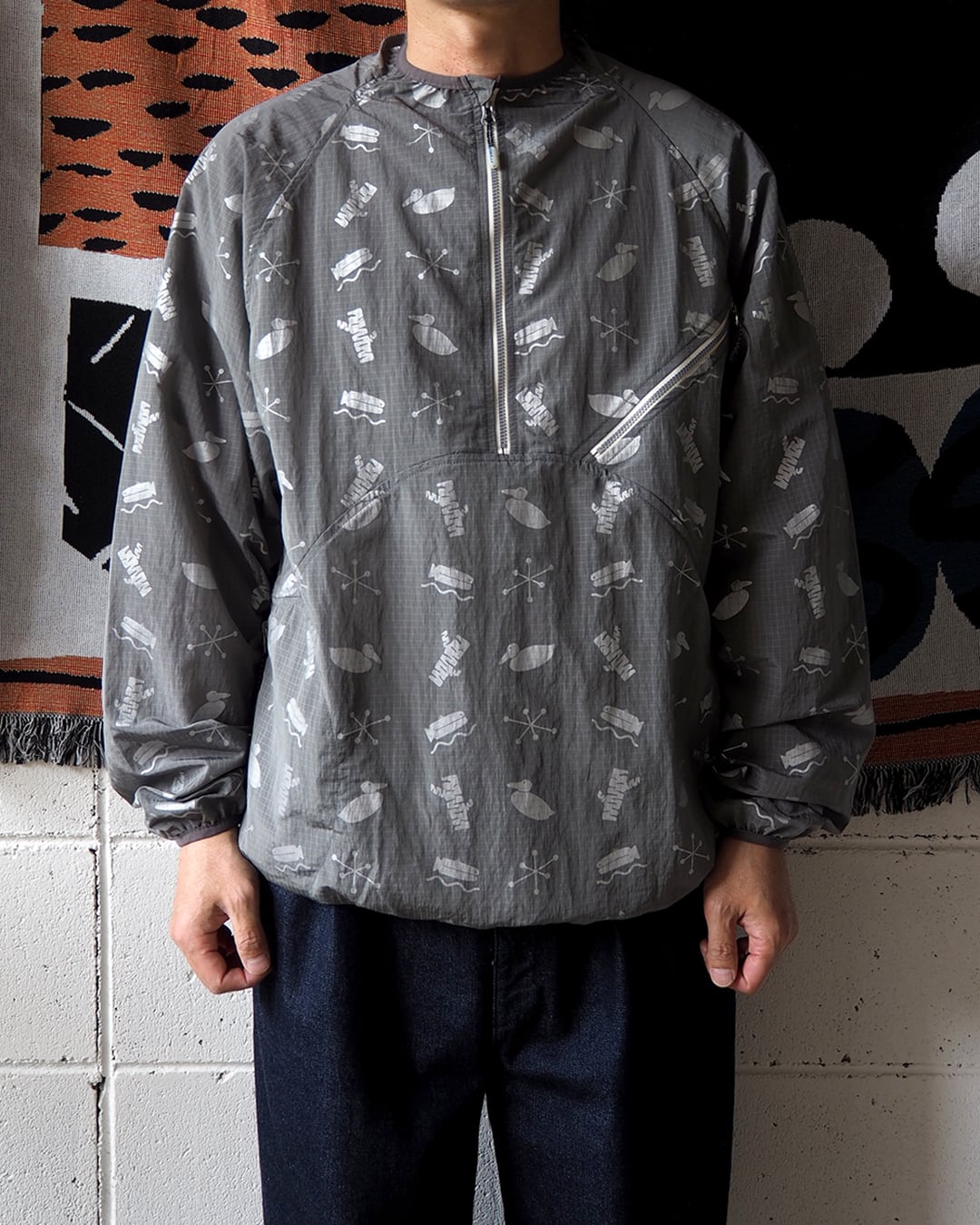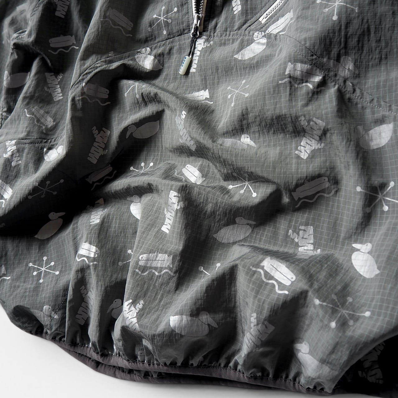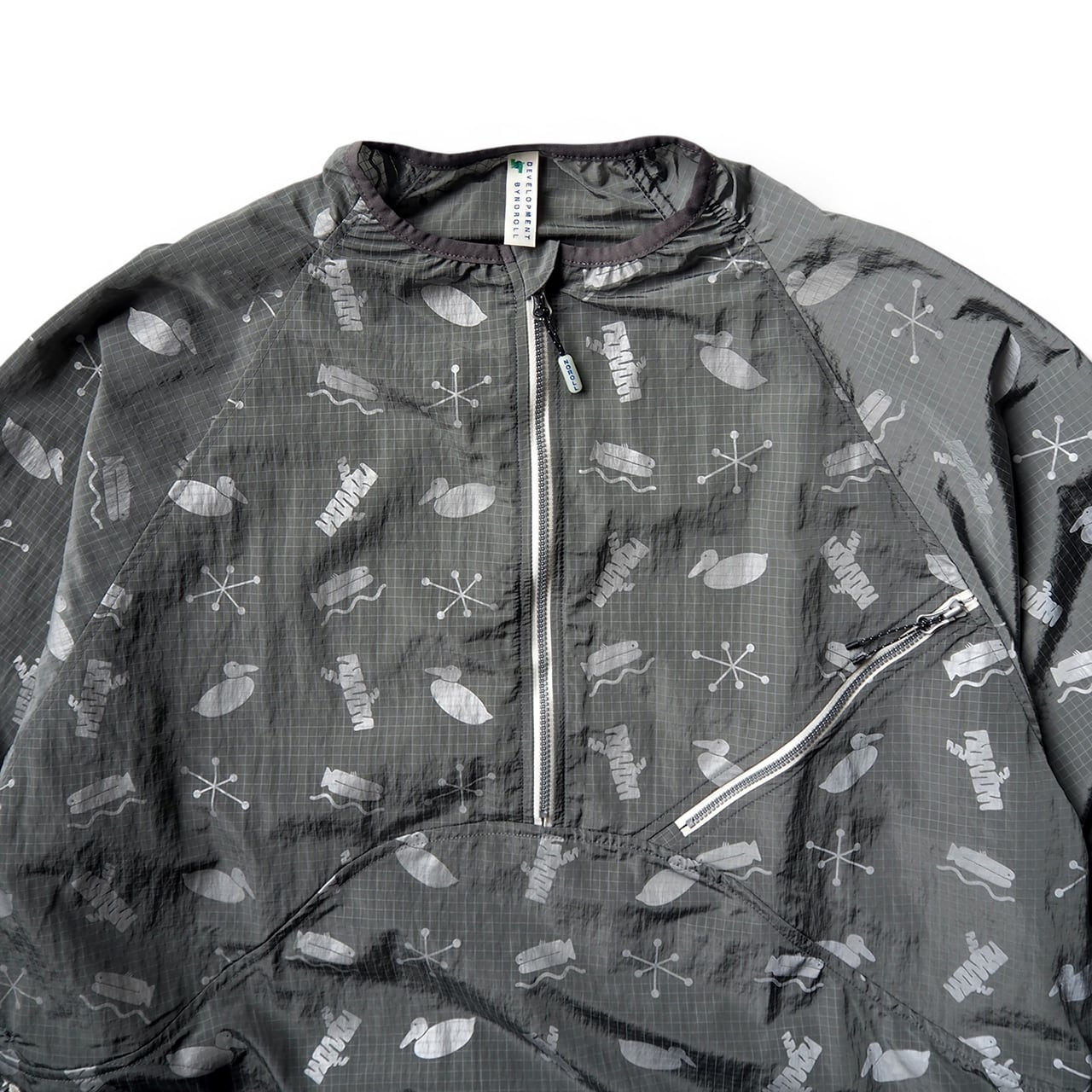 4つのモチーフをリフレクタープリントしたナイロンプルオーバー。