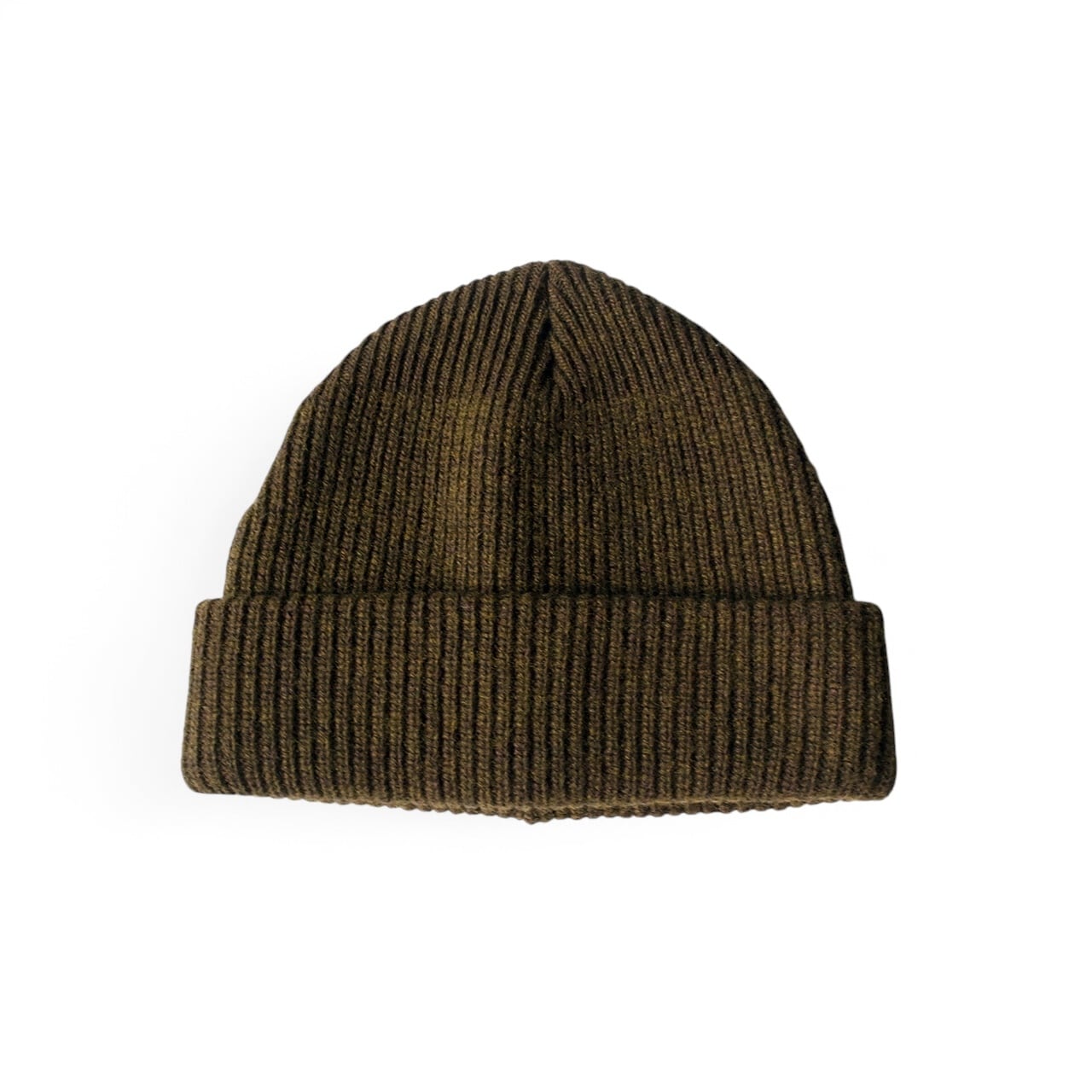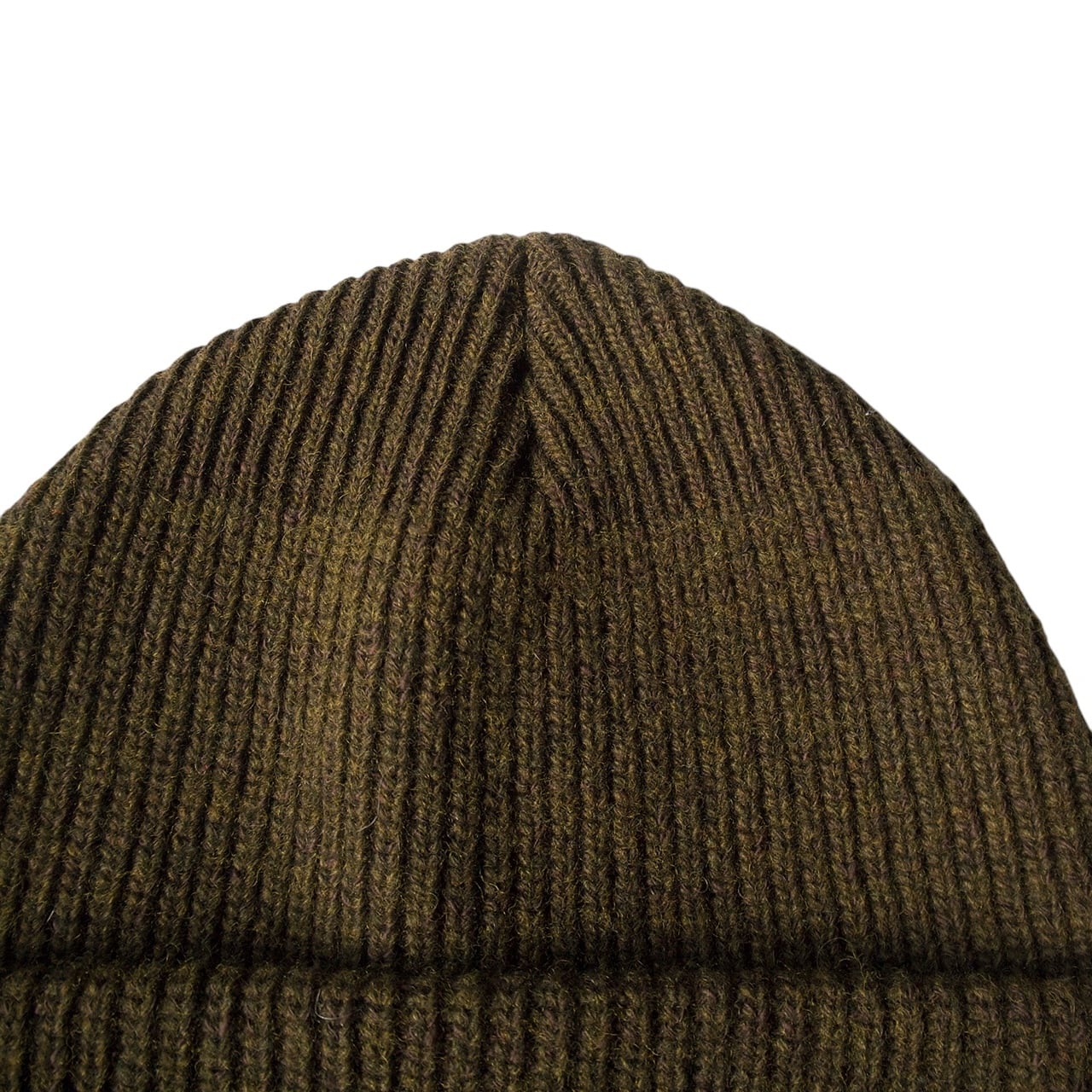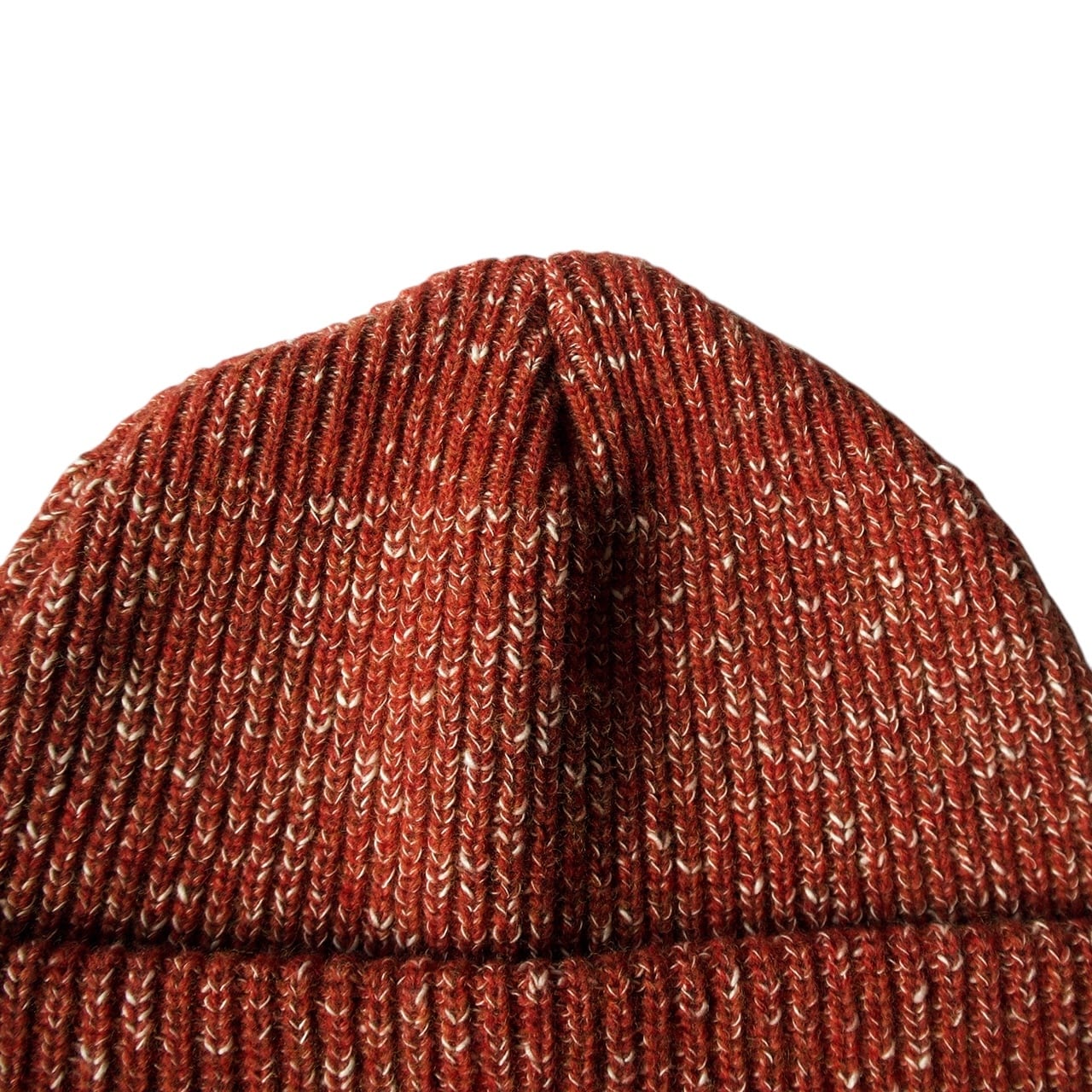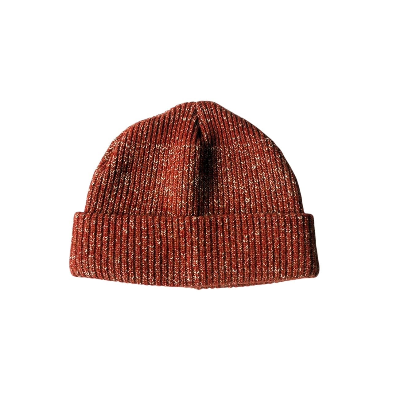 上質なウール糸にコットンスラブを引きそろえてランダムな柄にしたニット帽。