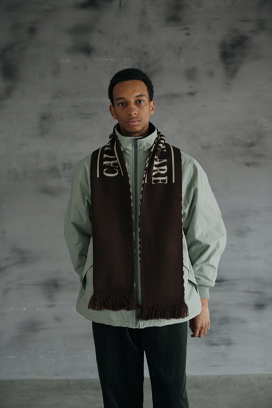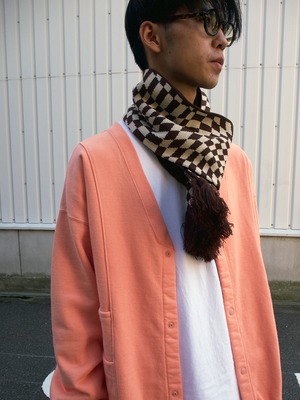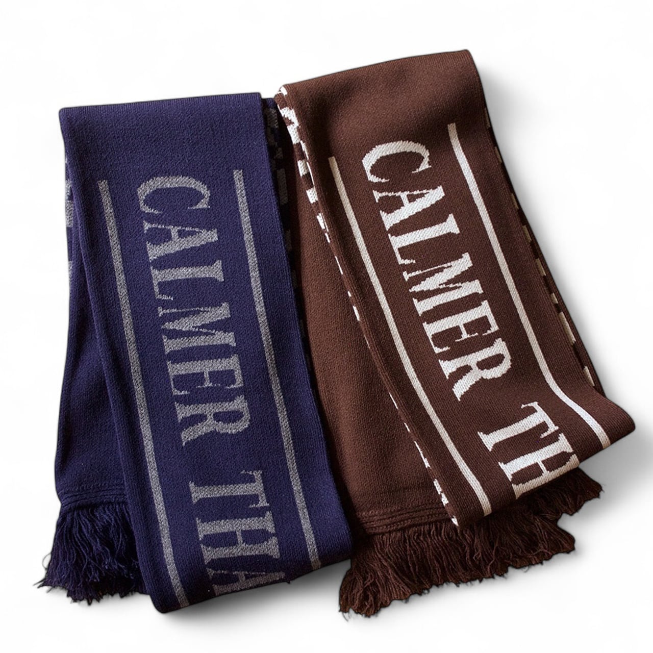 アクリル100%で編み立てた使い勝手の良いダブルフェイスのスカーフ。