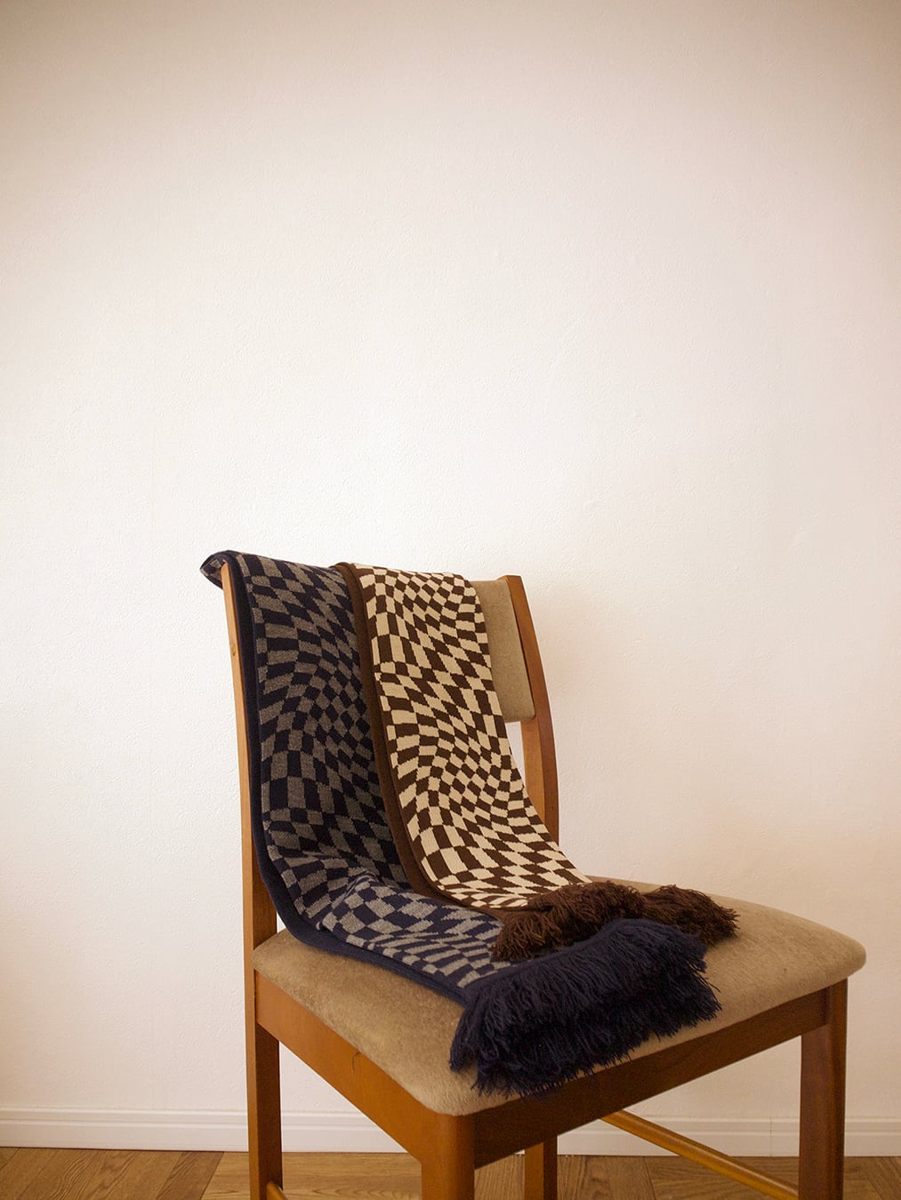 表側はサイケデリックなOP ART調の柄をジャガードで表現。