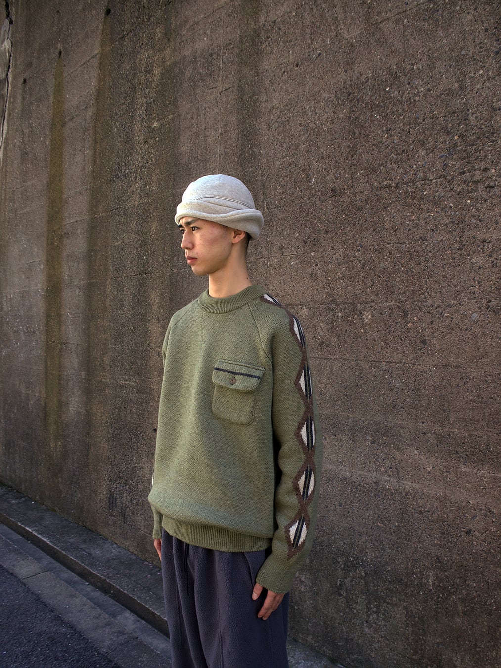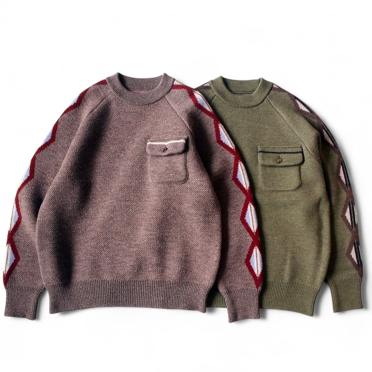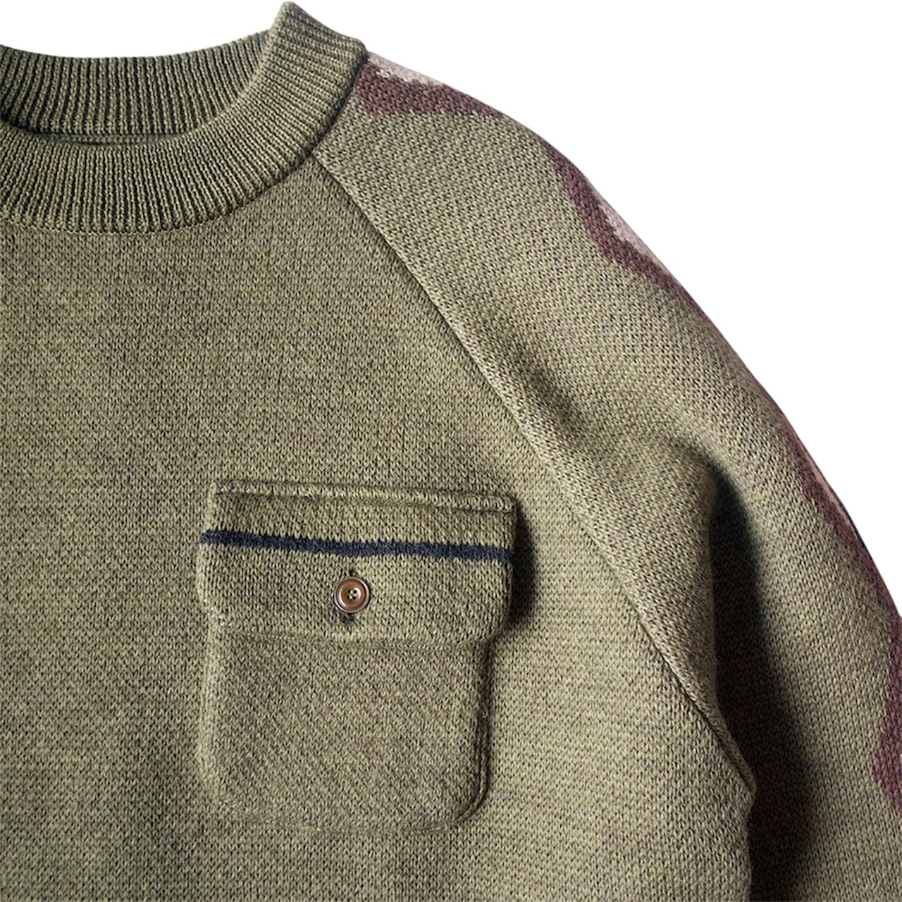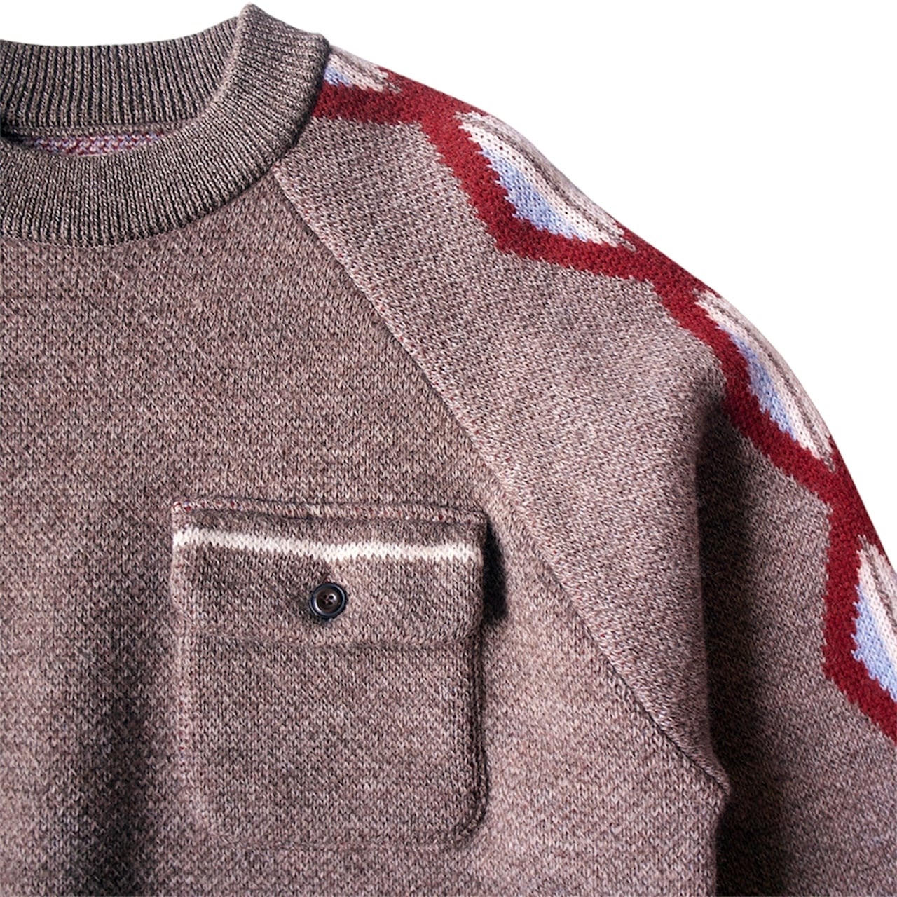 ラグランスリーブのジャガードニット。
